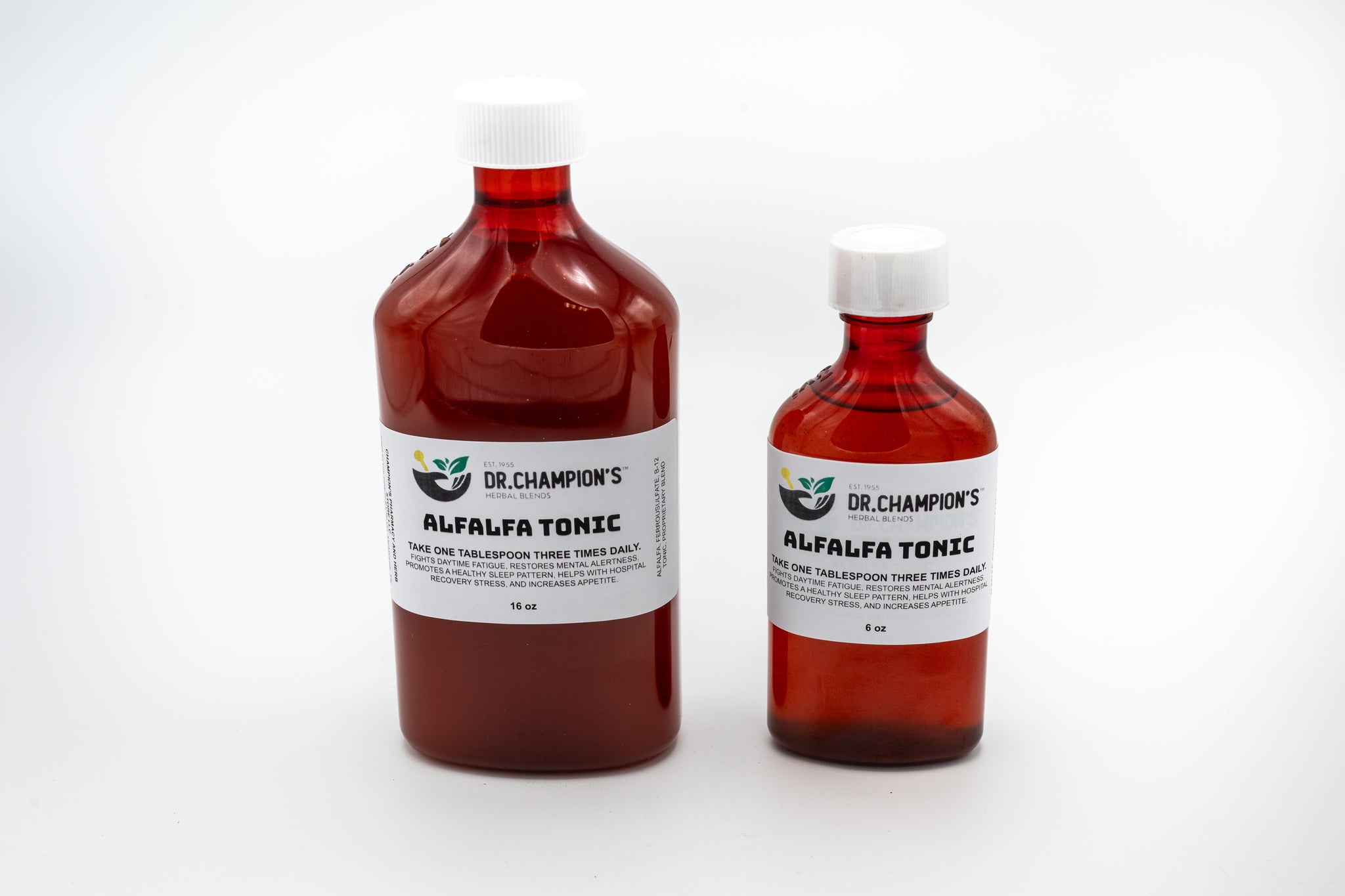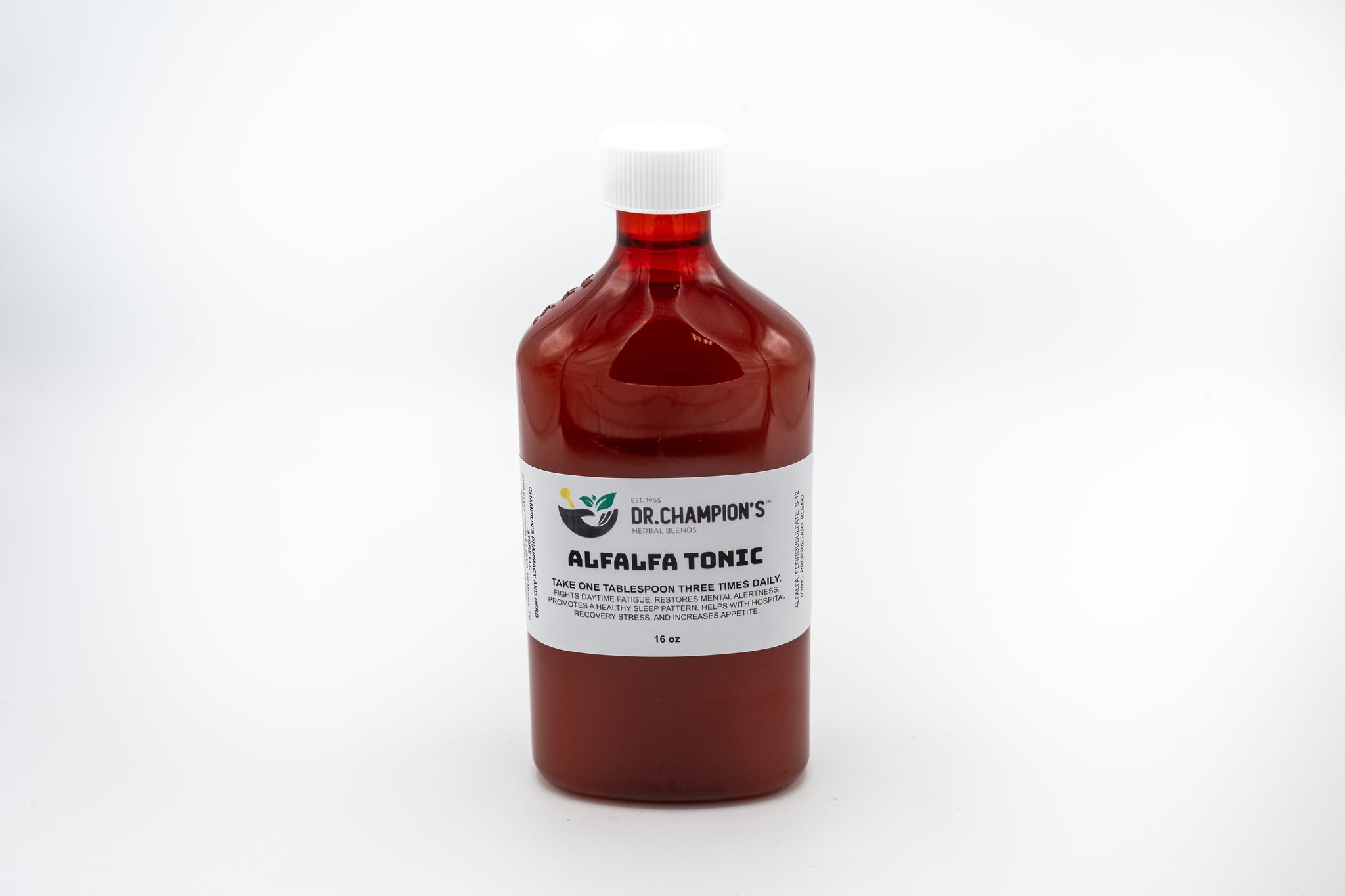 Dr. Champion's Alfalfa Tonic was formulated by Dr. Champion in 1958 during his experience as a hospital pharmacist. This formulation fights daytime fatigue, restore mental alertness, helps with hospital recovery stress and increases appetite. Pharmacist blended. Feel better today!
